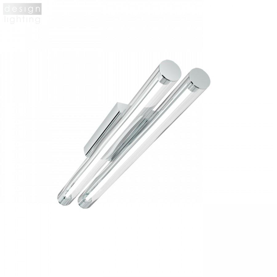 Zářivkové svítidlo pro dvě T5 trubice, lišta a upevnění z chromu, kryt z čirého skla.
