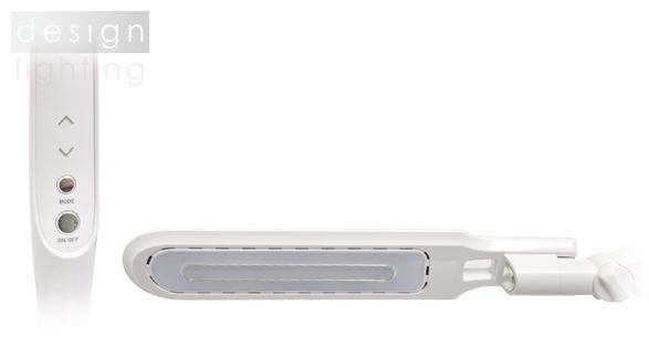 Moderní stmívatelná kancelářská lampička typu pantograf pro osvětlení pracovního prostoru stolu. Využívá vysoce úspornou SMD LED technologii s dlouhou životností. Tělo lampy je opatřeno otočnými klouby pro pohodlné nastavení polohy dle potřeby. Ovládání umožňuje plynulé měnění intenzity osvětlení a změnu barvy světla (teplé, neutrální a studené). Součástí balení podstavec i šroubová svorka pro upevnění ke stolu.