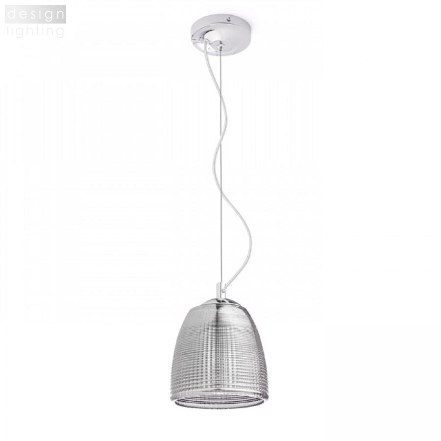 Elegantní závěsné svítidlo se strukturovaným sklem a chromovými doplňky.