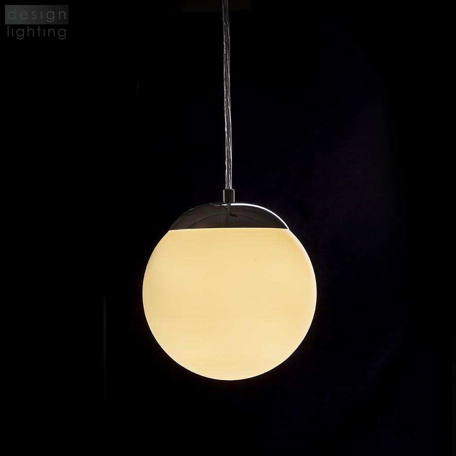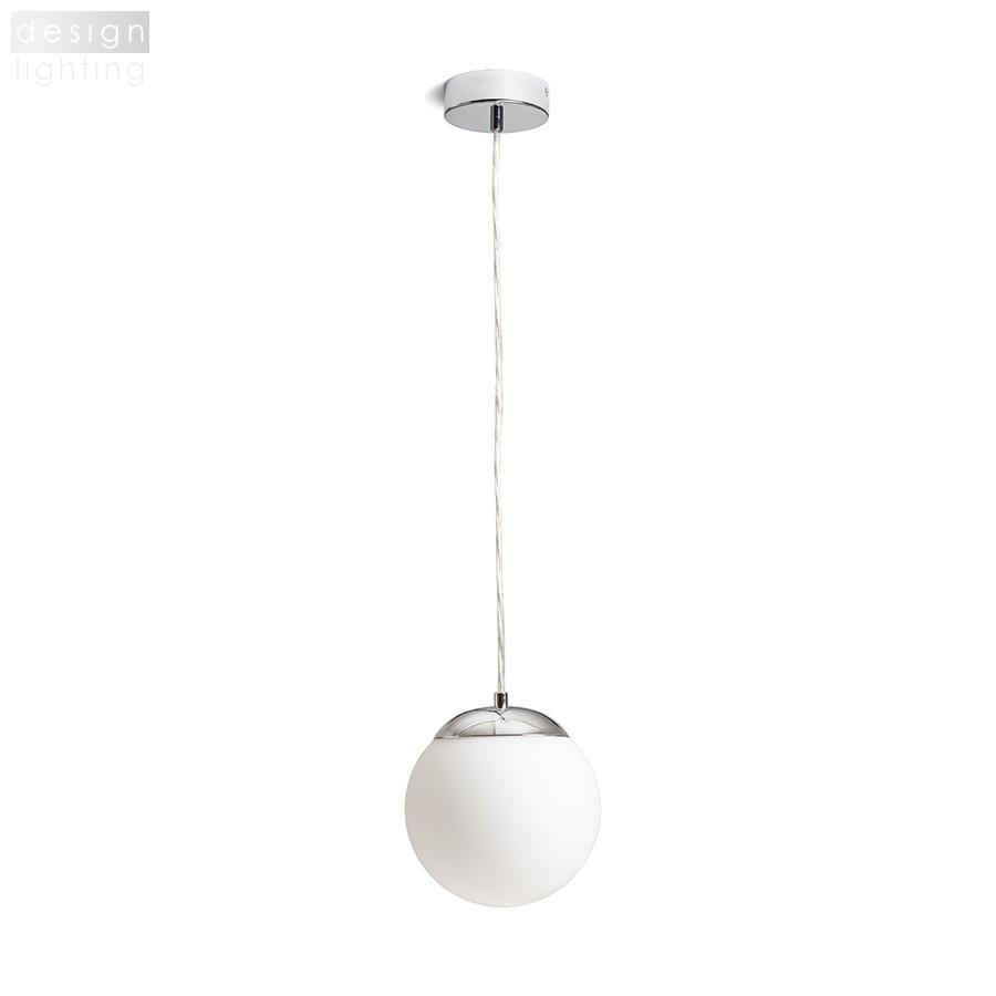 Závěsné svítidlo s opálovým sklem a chromovými doplňky. Vhodné do vlhkého prostředí.