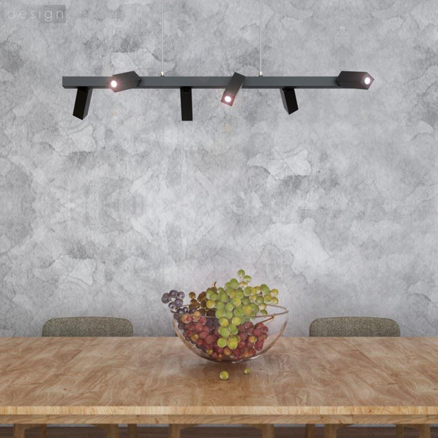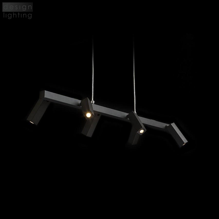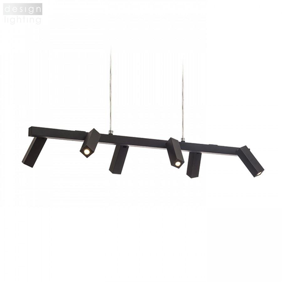 Závěsná lampa v hranatém designu se šesti nastavitelnými LED reflektory.