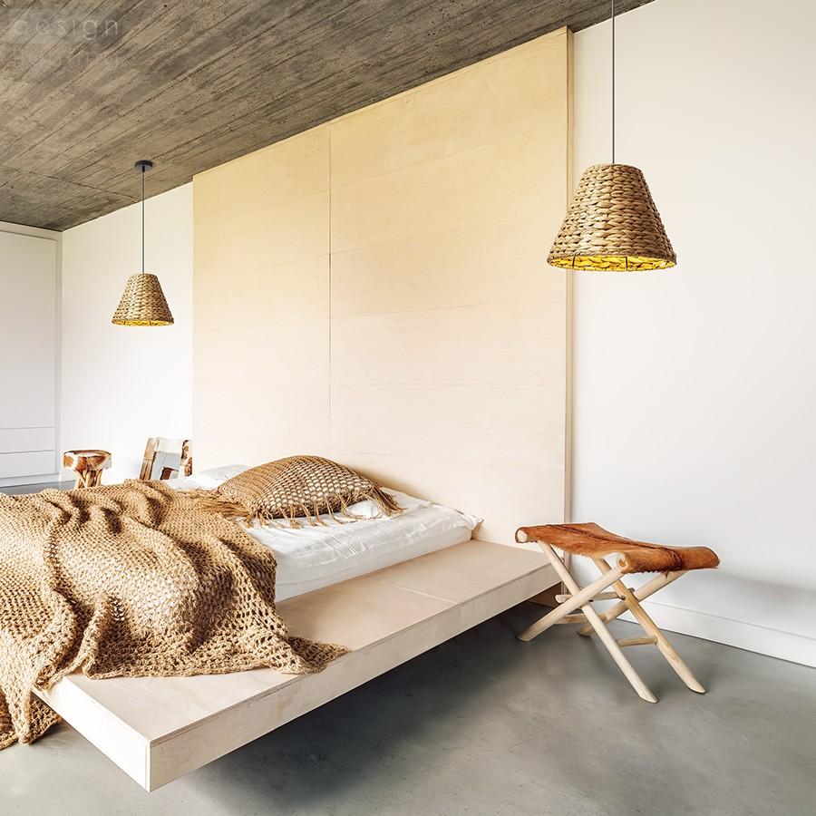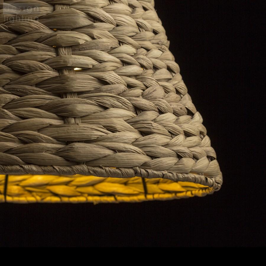 Závěsné vyplétané konické svítidlo z přírodních materiálů.