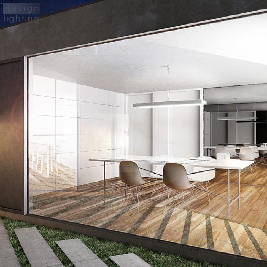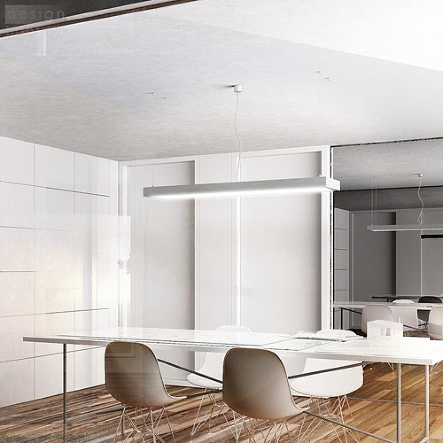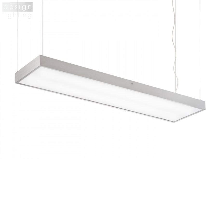 Obdélníkové zářivkové svítidlo z hliníkového profilu, elegantní provedení v přírodním hliníku s opálovým PMMA difuzerem se svícením dolů, třížilový transparentní kabel.