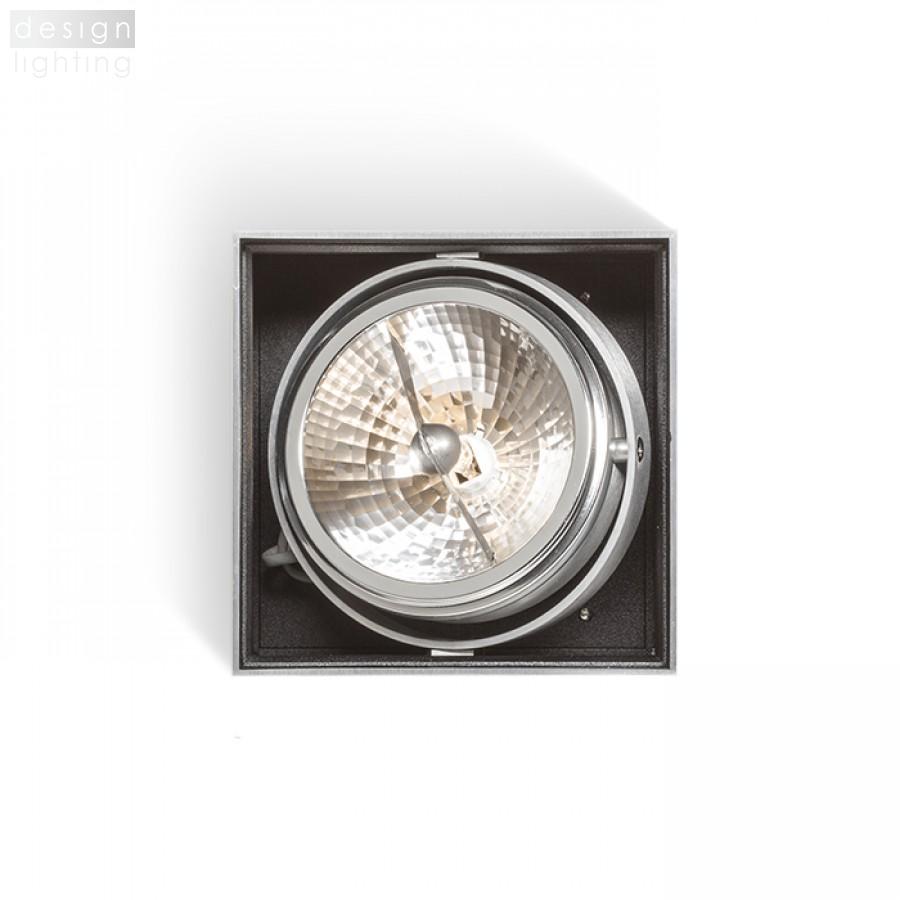 Stropní svítidlo pro jeden halogenový zdroj, který je možný naklápět ve dvou osách.