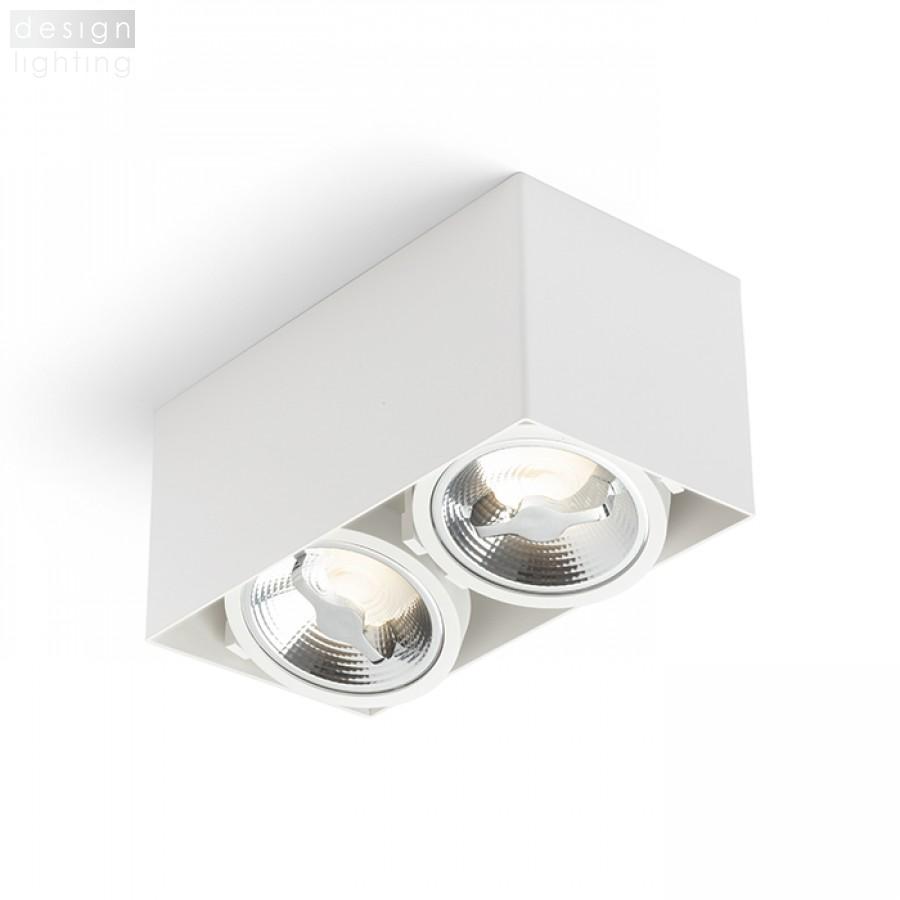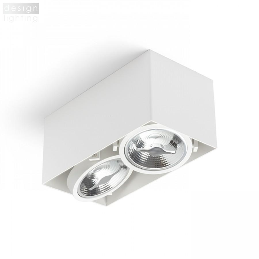 Stropní lakované svítidlo pro dva LED zdroje, který je možný naklápět ve dvou osách.