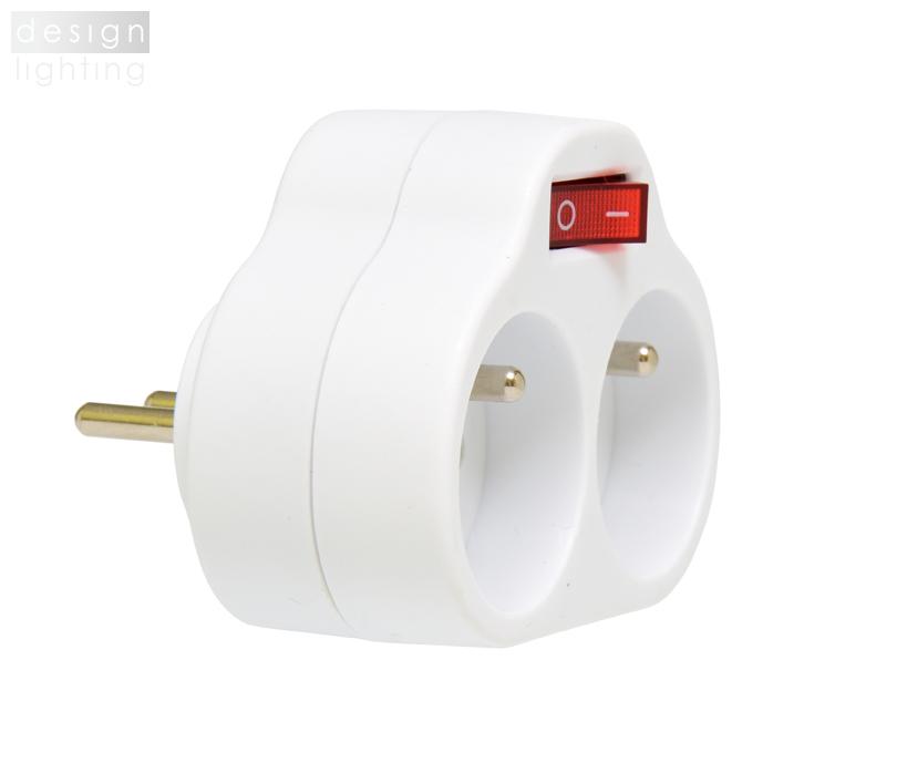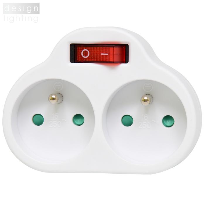 Standardní rozbočovací zásuvka bílé barvy pro vnitřní použití se 2 zásuvkami a včetně dětských clonek. Tato rozbočka je vybavena kolébkovým vypínačem, stupeň ochrany je IP20.