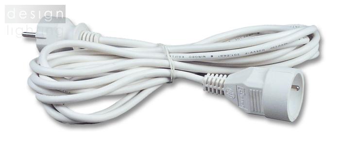 Standardní pohyblivý přívod-spojka bílé barvy pro vniřní použití s dětskými clonkami. Zásuvka a vidlice je vyrobena z plastu, izolace z PVC.